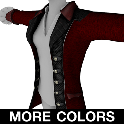 An open front Pirate coat with leather and mesh detailing, large cuffs, and soft coat tails. Features high quality model, advanced materials and cloth physics (where available).