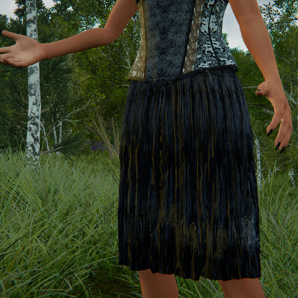 A long flexi skirt designed to be worn with the Bettie corset top by BlakOpal Designs. Features high quality model and cloth physics (where available).