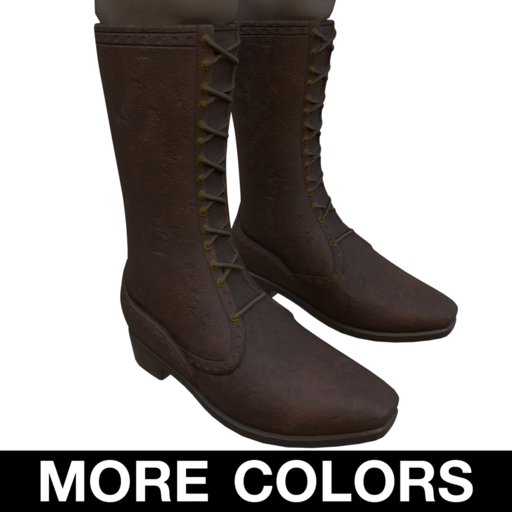 Sturdy laced boots, a bit worn from battle, but ready for your next adventure. Features a squared toe, low heels, and tooled detailing. Designed to look great with the BlakOpal Antilles Pirate outfit. Features high quality model and advanced 4K materials.
