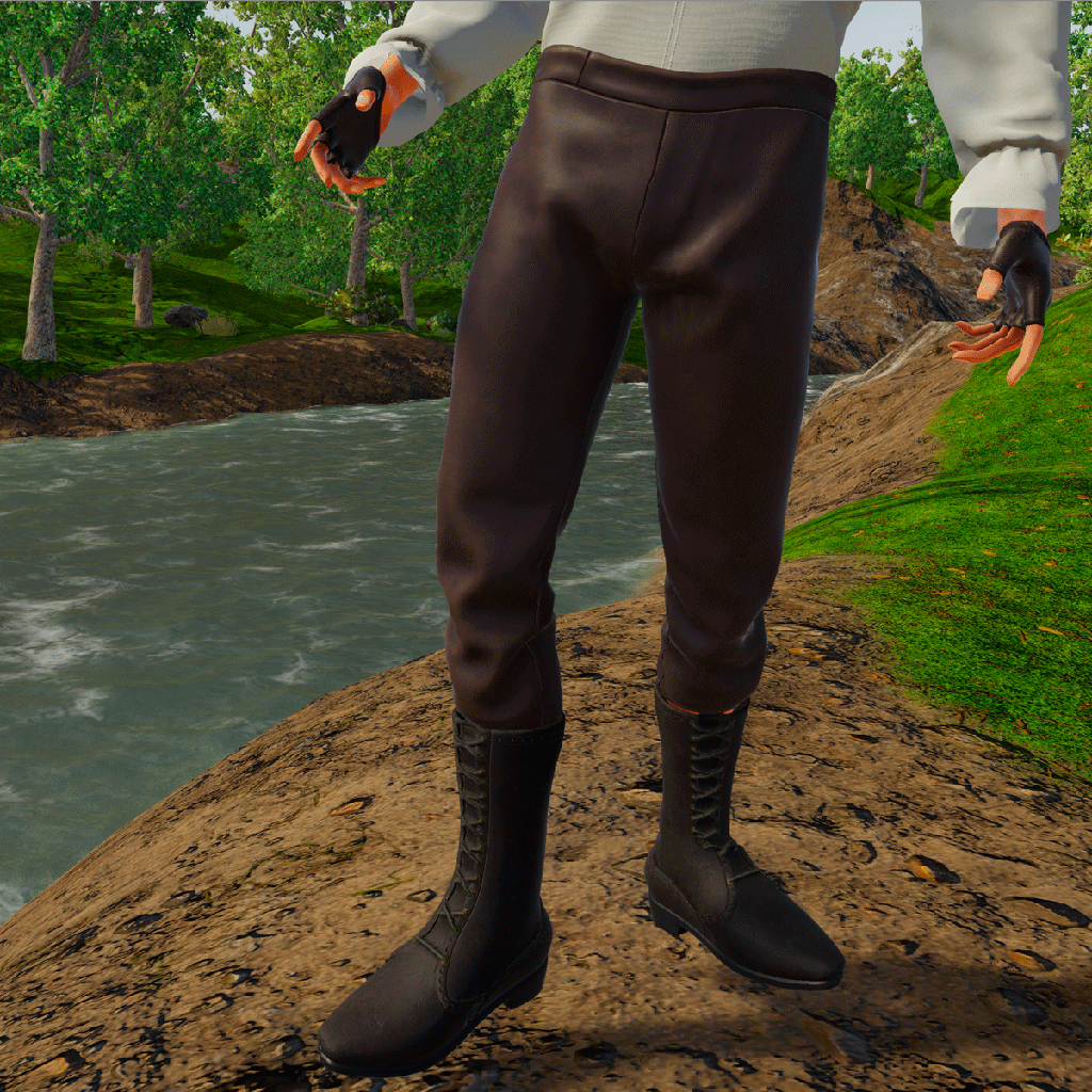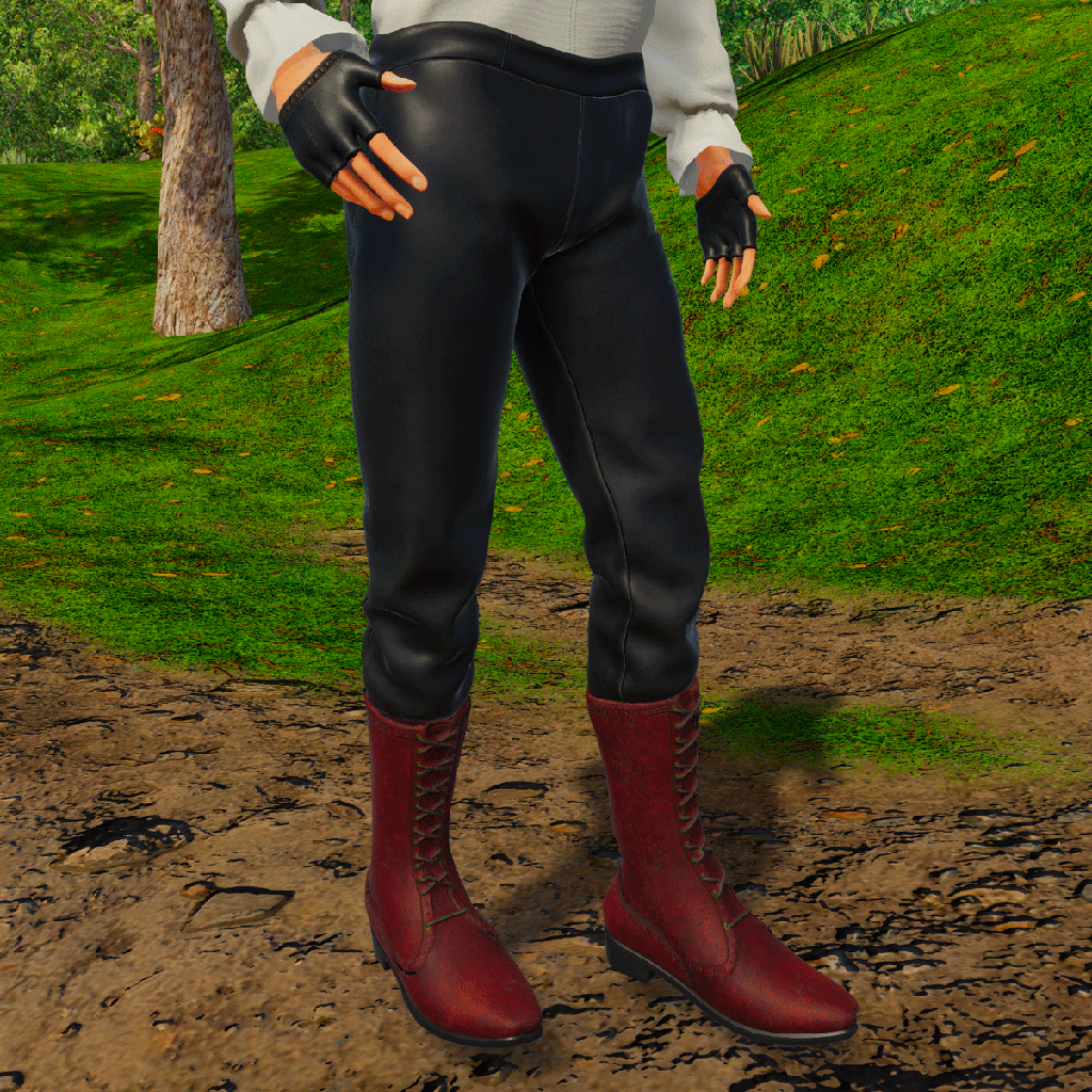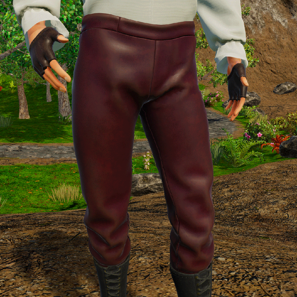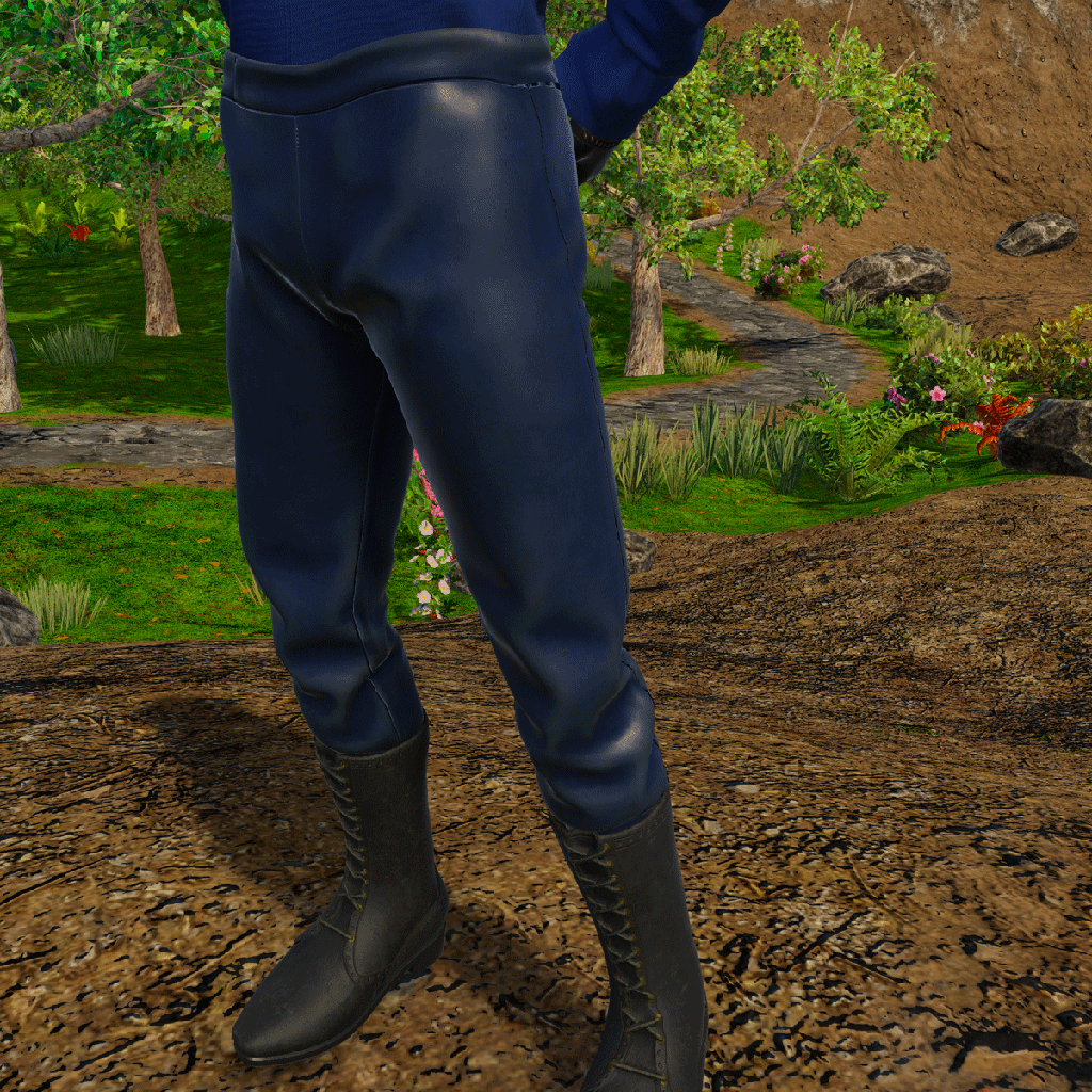 Leather pants suitable for plundering, loosely fitted at the waist, and cut short to tuck into boots ... a great choice if youre sailing the warm waters of the Caribbean, or if you happen to have a peg leg! Designed with BlakOpal Lace Front Boots in mind. Features high quality model and advanced 4K materials.