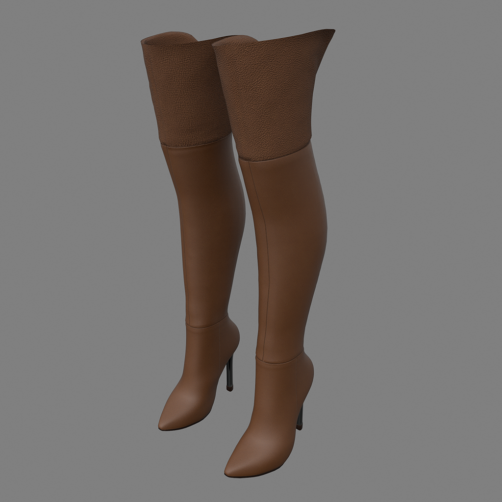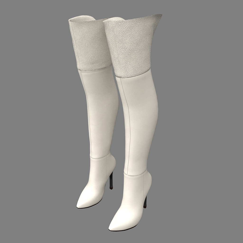 Sexy! Tall leather boots with shiny metal stiletto heels, and pointy toes and a contrasting textured leather on the thigh-high upper. Features high quality model and advanced materials.