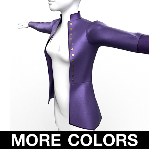 A beautiful satin jacket with tabbed collar, puff shoulder, and metal buttons. Features high quality model, advanced materials and cloth physics (where available).
