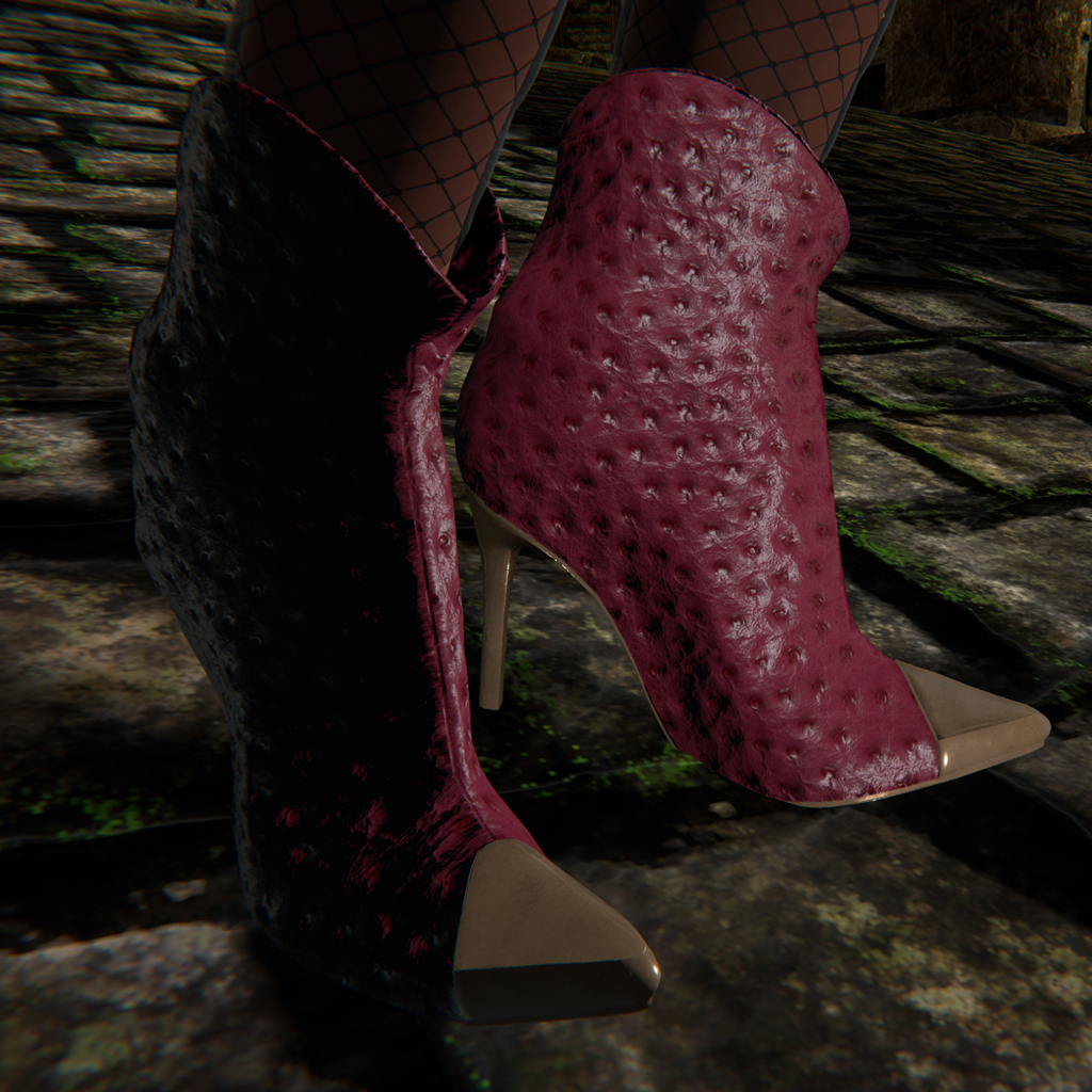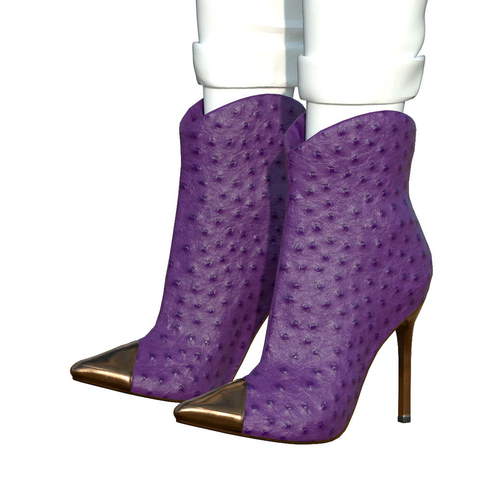 Ultra-sexy ostrich leather ankle boot rises to incredible heights on a spiked metal stiletto heel, with a matching metal toe cap. The boot leather contrasts the metal details in a fabulous style. These boots will turn heads for sure! Features high quality model and advanced materials.