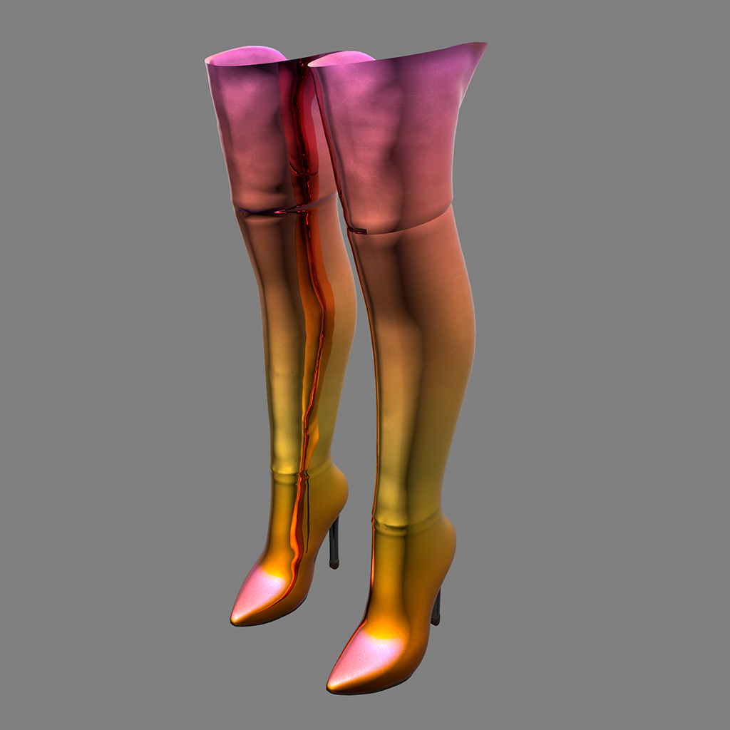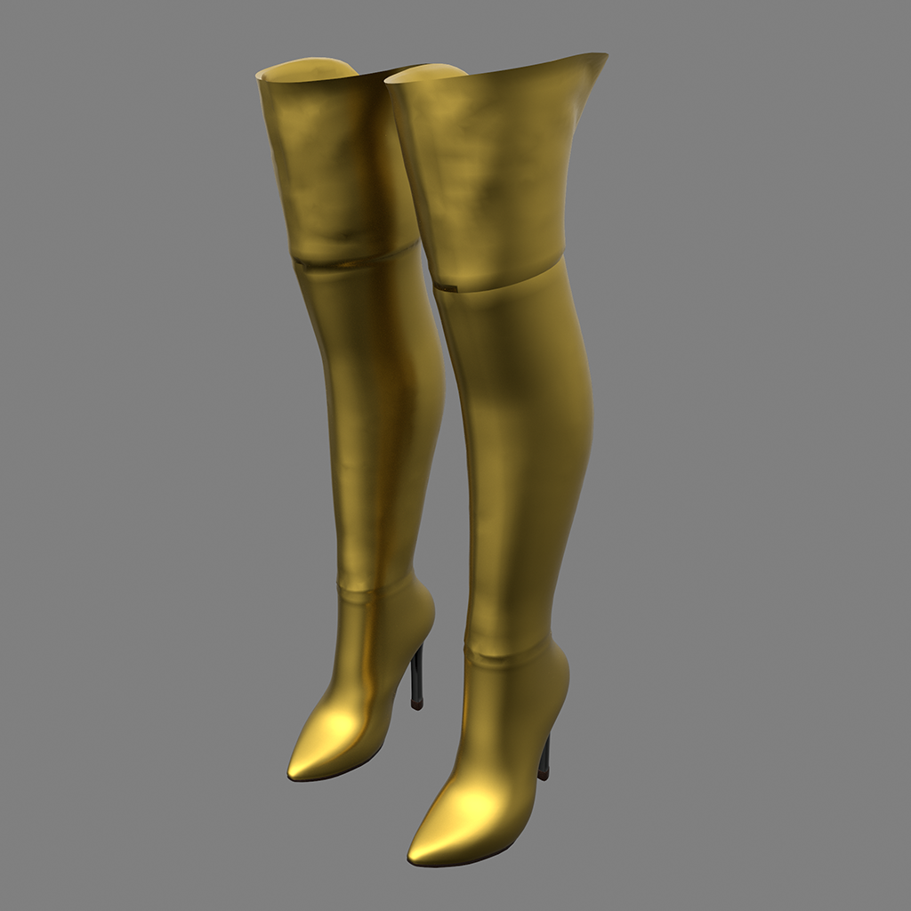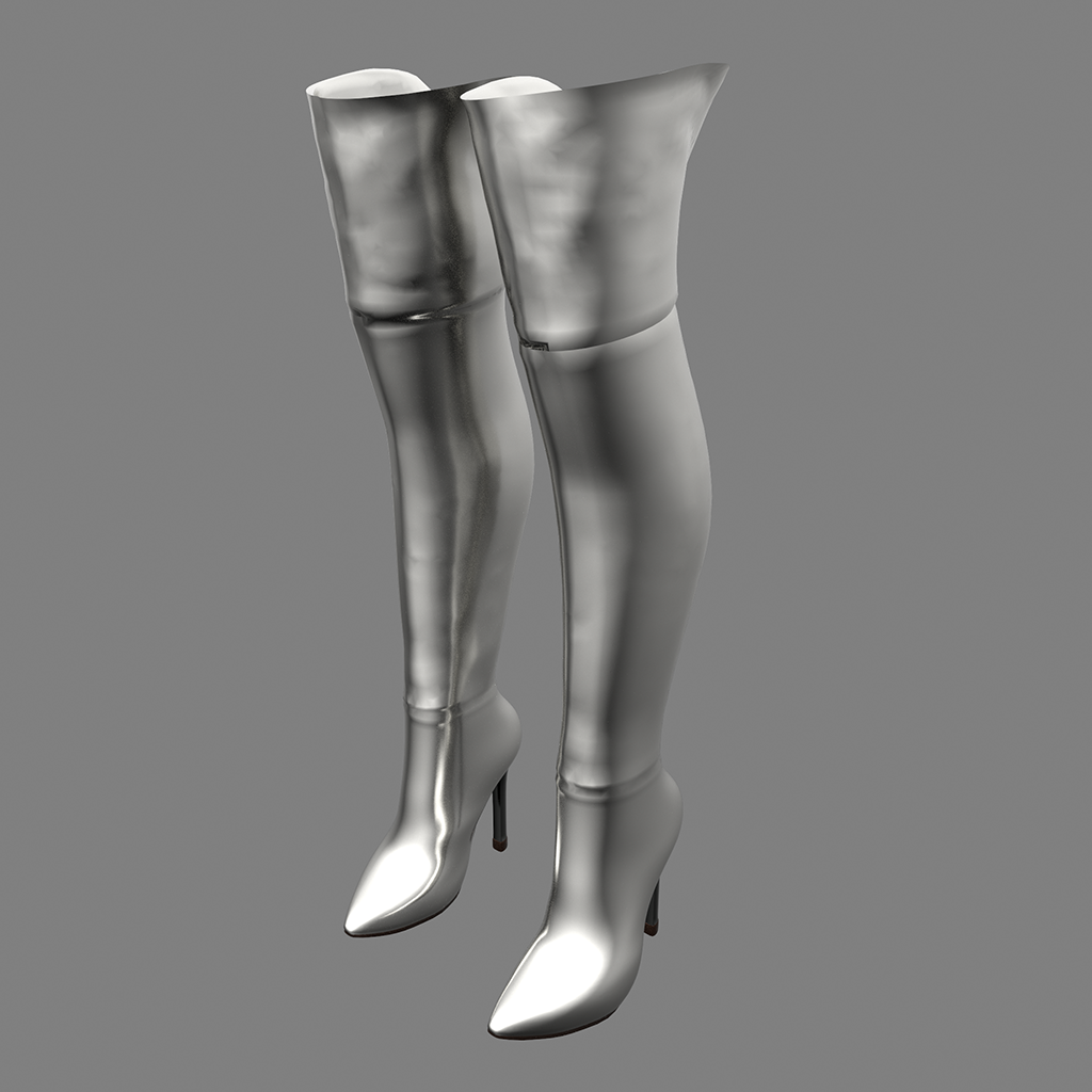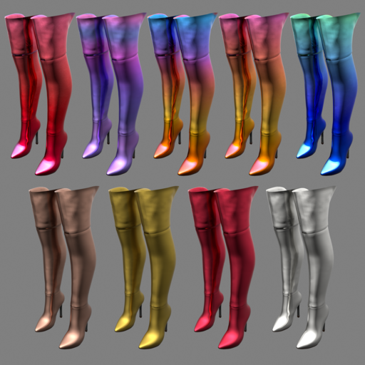 Sexy! Tall, beautifully shiny metallic boots with shiny metal stiletto heels, and pointy toes. Bundle includes 9 pairs of boots for female avatars. Features high quality model and advanced materials.