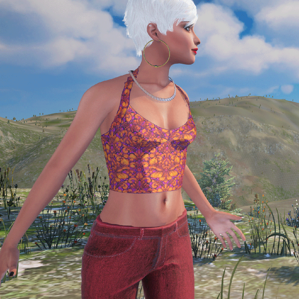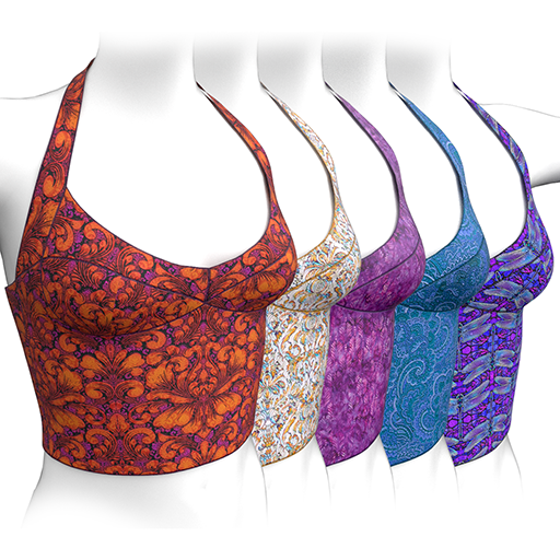 A fun top for festivals, and all your social events. This halter top has contrast seams, which highlight your curves. Bundle includes halter top in 5 different patterns for female avatars. Features advanced materials.