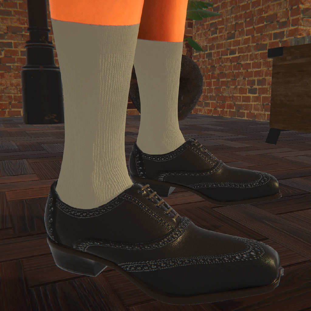The best dressed ankles wear Sharp Socks. These ribbed knit socks are designed for men to look great with all your dress shoes and pants. Worn as a tattoo layer, they will fit perfectly, and not add any bulk to your ankles or feet. Bundle includes socks in 7 colors for male avatars.