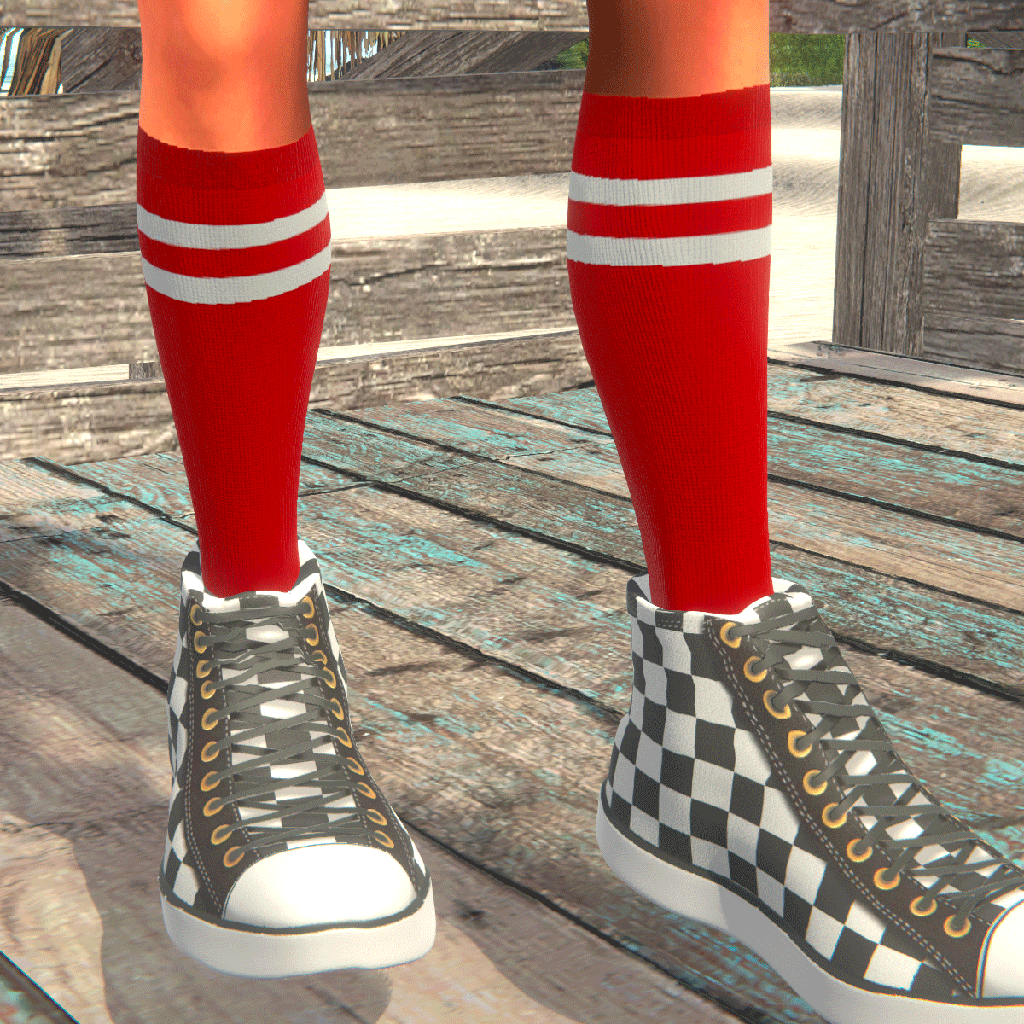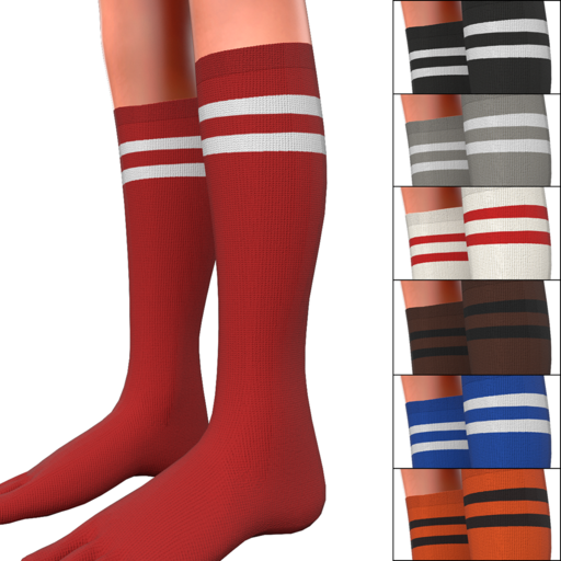 Our Stout socks are a taller ribbed knit sock, and designed to complement your boots. Worn as a tattoo layer, they will fit perfectly, and not add any bulk to your ankles or feet. Bundle includes socks in 7 colors for male avatars.