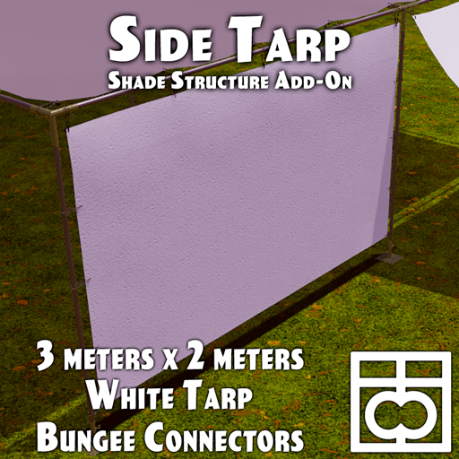 Side wall tarp add-on for shade structures. 3 meter x 2 meter white tarp attaches to conduit frame using ball bungee connectors at top and both sides. Features high quality model, advanced materials cloth physics (where available).