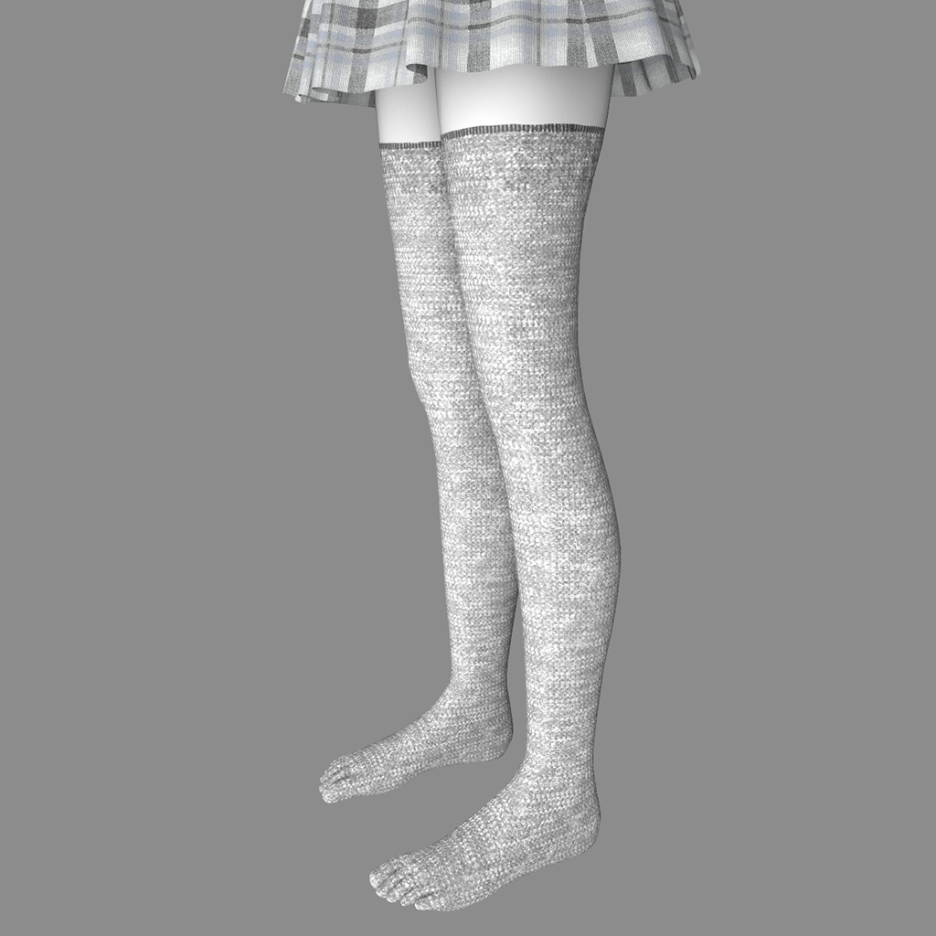 Very tall socks for very short skirts. Soft heather ribbed-knit wool thigh-high stockings with a contrasting bound edge. Worn as tattoo layer.