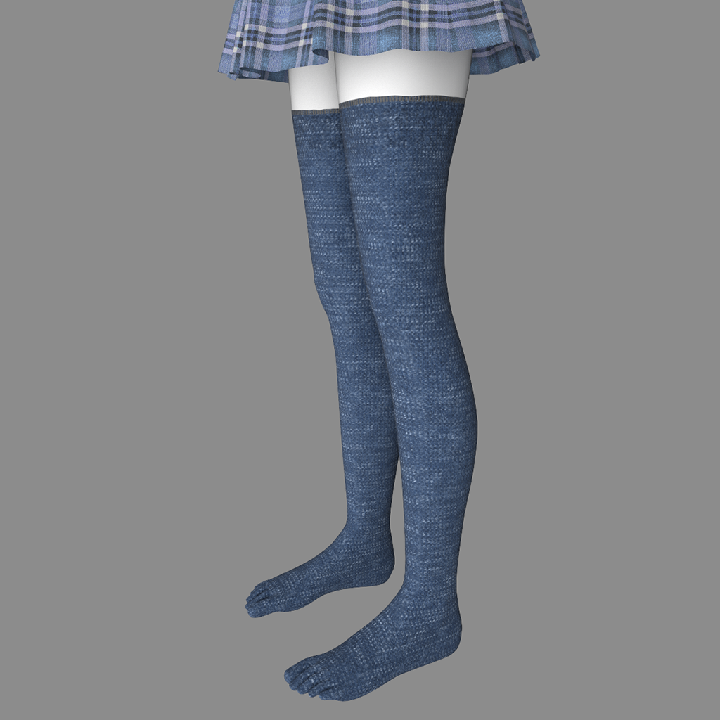 Very tall socks for very short skirts. Soft heather ribbed-knit wool thigh-high stockings with a contrasting bound edge. Worn as tattoo layer.