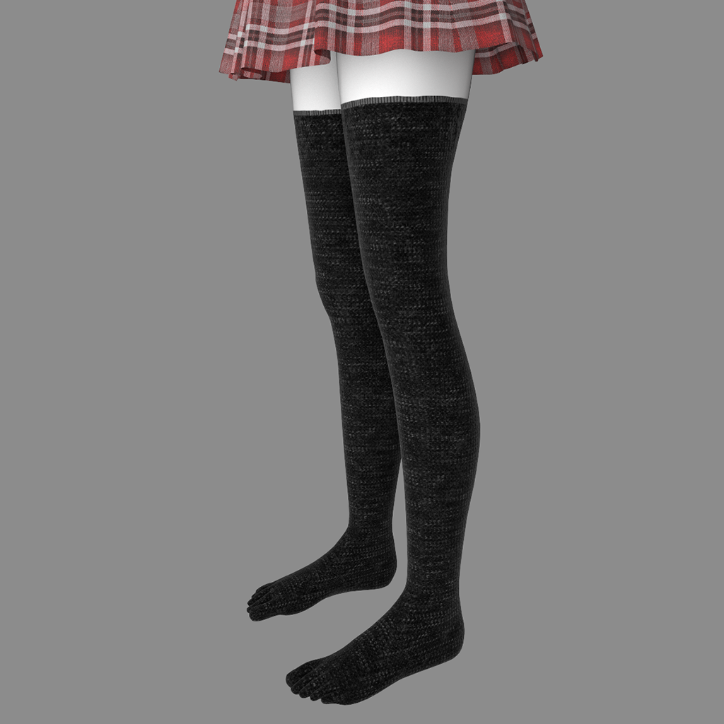 Very tall socks for very short skirts. Soft heather ribbed-knit wool thigh-high stockings with a contrasting bound edge. Worn as tattoo layer.