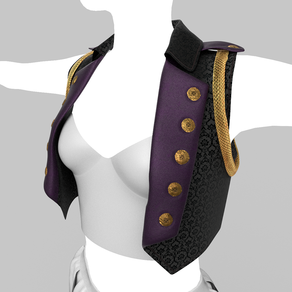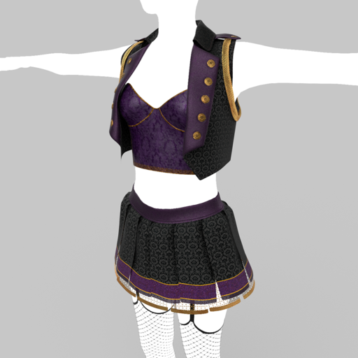 Be ready for adventure with our Luscious Pirate Outfit. This bundle for female avatars includes 6 coordinated pieces you can wear together or mix and match with other pieces to create your own unique look. Youll get a short-cropped jacket with sleeves removed, featuring wide buttoned lapels, and epaulets with gold chains around the arms. The bustier features a strapless top stitched up in the most awesome metallic tone-on-tone patterned brocade, and trimmed with lace and piping. The Luscious Pirate Mini-Skirt is made of strips of fabrics have been loosely arranged and sewn together with the finest duchess satin to form a skimpy mini skirt. The garter is a two-tone sheer lace boy-short panty with garter straps and featuring wide fishnet stockings. You also get long over-the-elbow fingerless gloves and a gothic, tribal tattoo that features a skull-heart on the chest, and flourishes across your belly. The entire ensemble features high quality models, advanced materials, and cloth physics (where available).