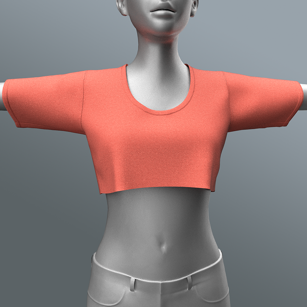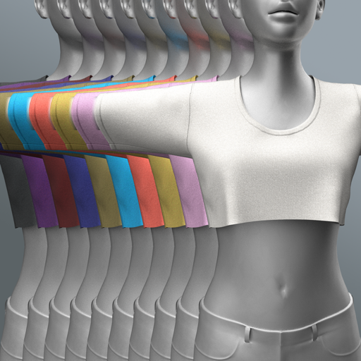Cotton-knit clean crop top shirt for female avatars. Bundle includes crop top shirt in 10 colors. Features high quality model. advanced 4K materials and cloth physics (where availabl)e).