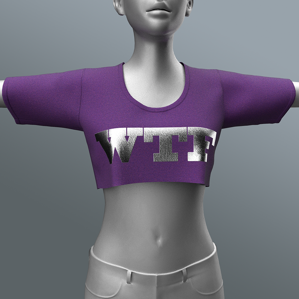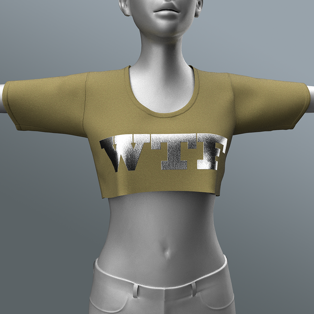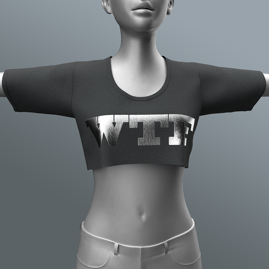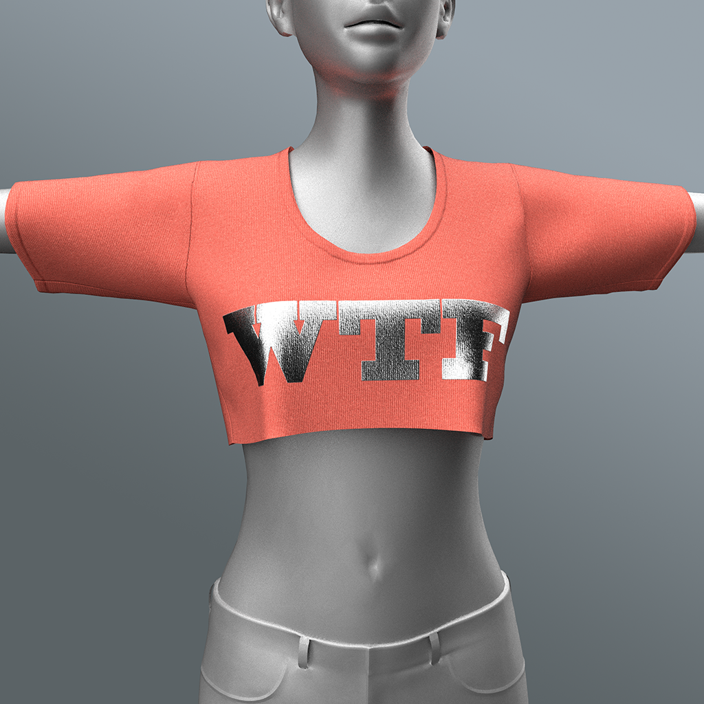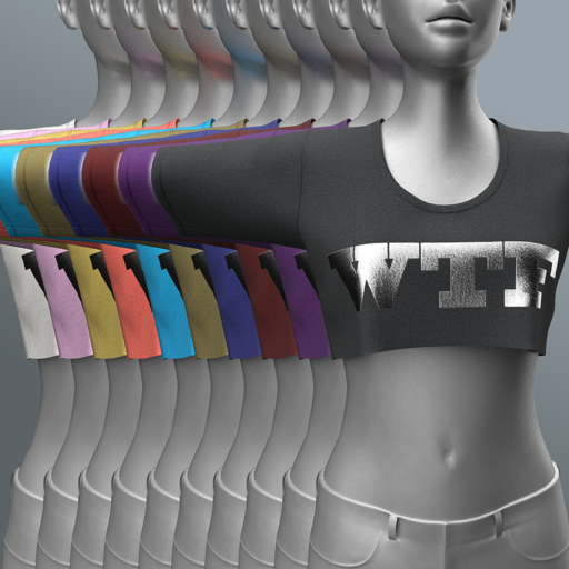 Cotton-knit crop top shirt for female avatars, emblazoned with the WTF (what the funk) letters. Features high quality model. advanced 4K materials and cloth physics (where availabl)e).