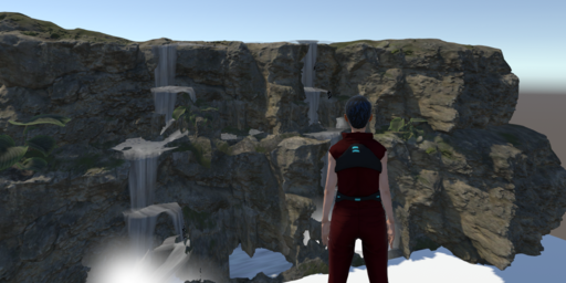 A AV size Waterfall with rocks to lay on your regions or on the outer banks of your region. You can scale to size. There is only a front side to this it is not double sidded.